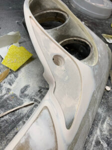 Checking and double checking that the design will fit without adversely affecting the vehicle’s original equipment can save a lot of rework at a later stage. This is not a quick job and the skill and experience of the installer is of paramount importance. With this done, the messy work can begin!