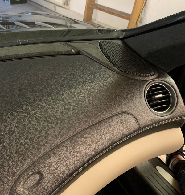 One of the scariest things to see, is a supercar being striped out. In this installation, Steven wanted to put the mid and high frequency speakers on axis up on the dashboard. The original factory positions were discounted as being unsuitable. Steven went to work to design and build a major dashboard modification.